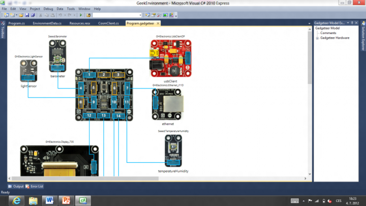 Za samostatnou kategorii pak považuji nově vzniklou Open Source Hardware platformu .NET Gadgeteer. Je to stavebnicový systém, kdy k řídící desce pomocí 10pinových konektorů připojujete různé moduly. Momentálně je k dispozici cca 50 modulů od tlačítek a svítících diod, přes různé senzory až po dotykové displeje nebo podporu pro VGA výstup.