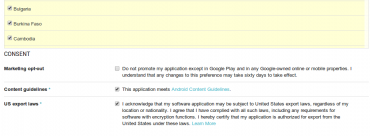 Content guidelines splňujeme a s americkým právem problémy mít nebudeme, takže obě dvě položky odfajfkujeme, stiskneme Save a tím máme vše potřebné nachystáno.