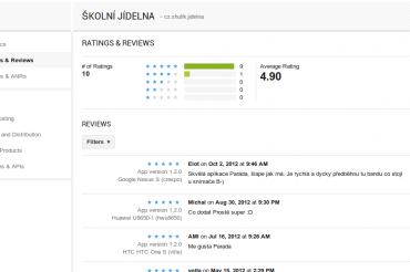 Nová Konzole je také mnohem souvislejší. Když jsem se ve staré chtěl podívat na komentáře k aplikaci, musel jsem ji v dashboardu najít a kliknout na Comments. Pokud jsem potom chtěl zkontrolovat odeslanou chybu, o níž někdo psal v komentáři, musel jsem se vrátit zpět na dashboard, znovu najít onu aplikaci a kliknout na Errors. Nyní se po kliknutí na aplikaci otevře její detail a vlevo se objeví další úroveň navigace, kde lze přepínat jak mezi statistikami, komentáři/hodnoceními a chybami, tak i mezi jednotlivými částmi nastavení, jak se má aplikace na Play Store chovat.