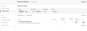 Zato pády a zamrznutí (Crashes & ANRs) změnu potřebovaly jako sůl a naštěstí se jí dočkaly. Konečně je pořádně vidět, kolik se objevilo jakých nových problémů, dají se filtrovat i podle stáří, mají přehledné detailní výpisy a hlavně se objevilo použitelné tlačítko, jímž mohu chybu označit za vyřešenou (ne že by tam předtím nebylo, ale upřímně řečeno jsem to zjistil až teď, když jsem porovnával, co se všechno změnilo).