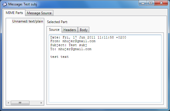 Po poklikání se e-mail otevře jako náhled ve výchozím programu (může to být například Outlook nebo Thunderbird). Případně je možné si zobrazit detaily zprávy včetně hlaviček v interním prohlížeči aplikace.