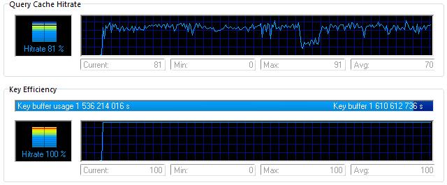Obr. 3 – Efektivita Query Cache a Key buffer v čase