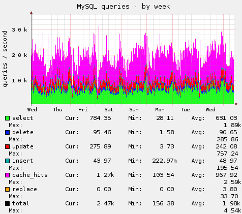 Obr. 2 – Statistiky dotazů MySQL evidované programem Munin