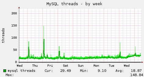 Obr. 4 – Počet aktivních vláken MySQL v čase