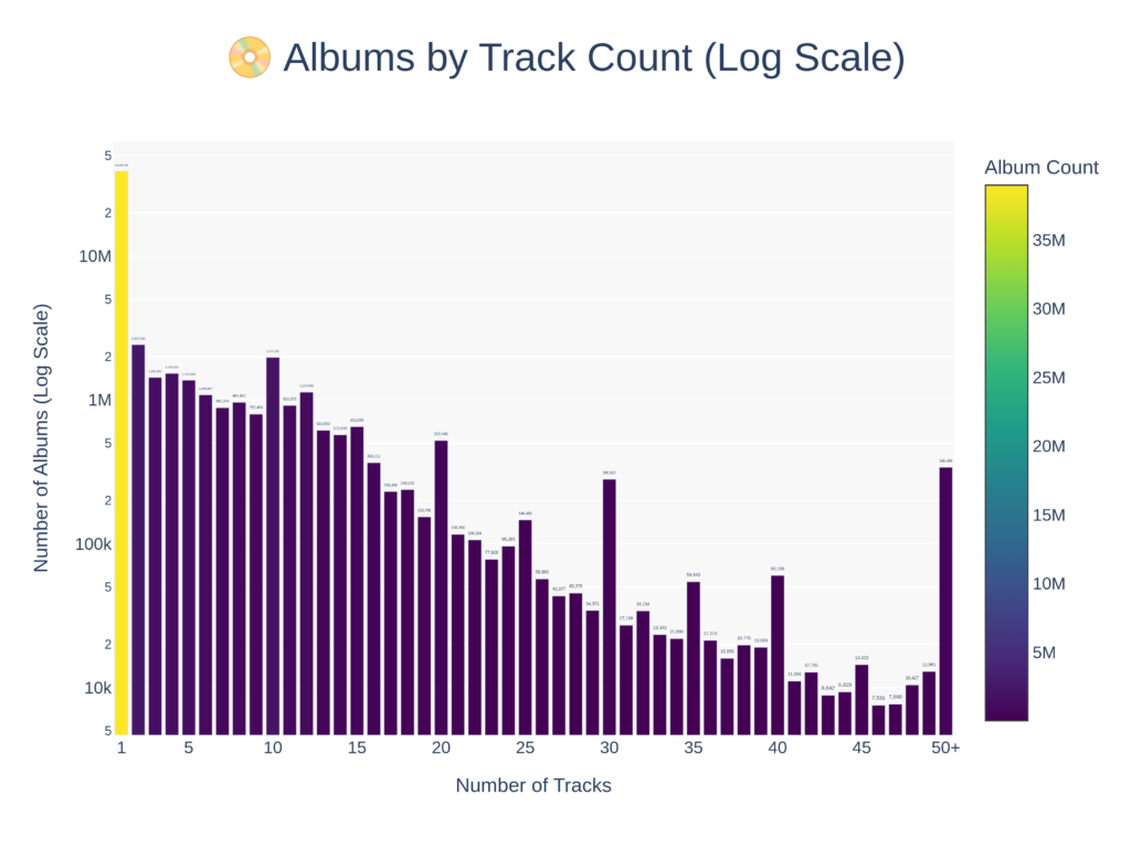 Z tohoto grafu je poznat, že nejvíce skladeb na Spotify jsou singly.