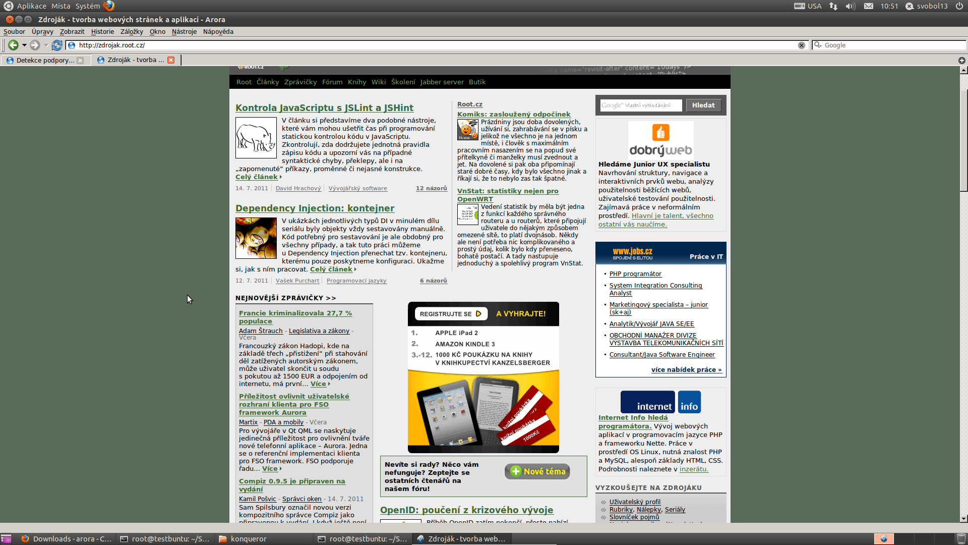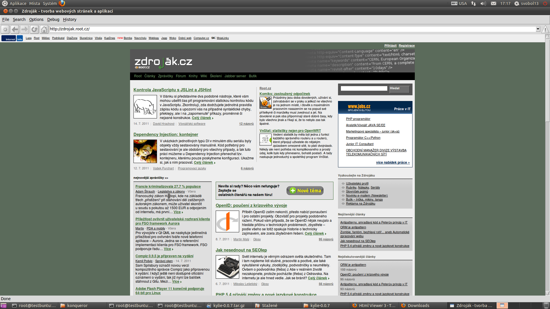 Chybí tu ještě jeden prohlížeč pro KDE, který navíc začíná Konqueror vytlačovat (např. v Kubuntu je od 10.10 výchozí), a to je rekonq. Používá KWebKit a podporuje i vývojářské nástroje, které jsou velmi podobné Firebugu. Na druhou stranu není úplně stabilní, obzvlášť ve spojení s Flashem.